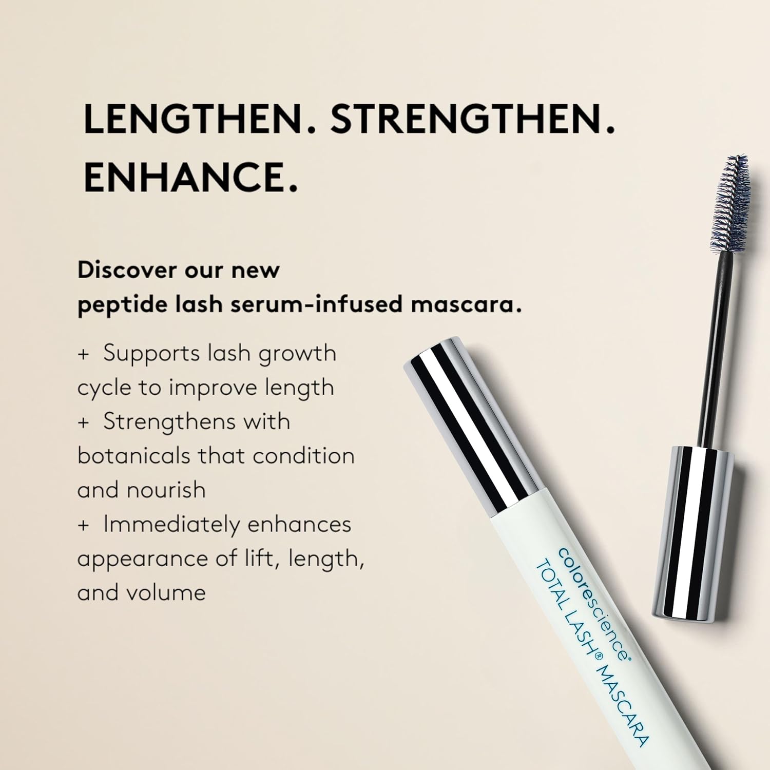 El Total Lash® Serum Mascara representa la evolución en el cuidado de pestañas, combinando eficacia clínica con maquillaje de alto desempeño. Este tratamiento trifuncional desarrollado por Colorescience ofrece: