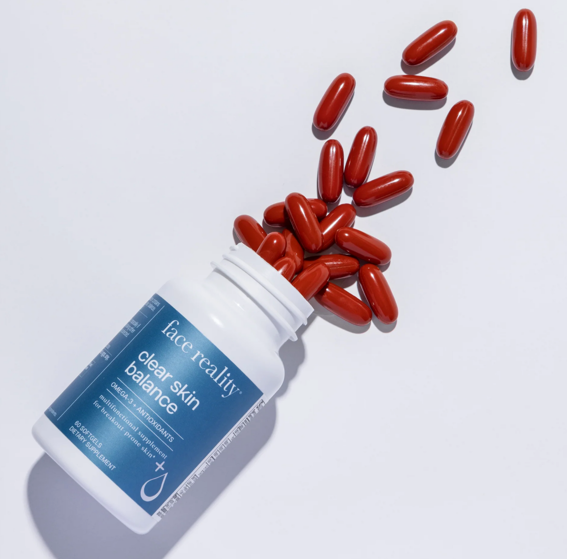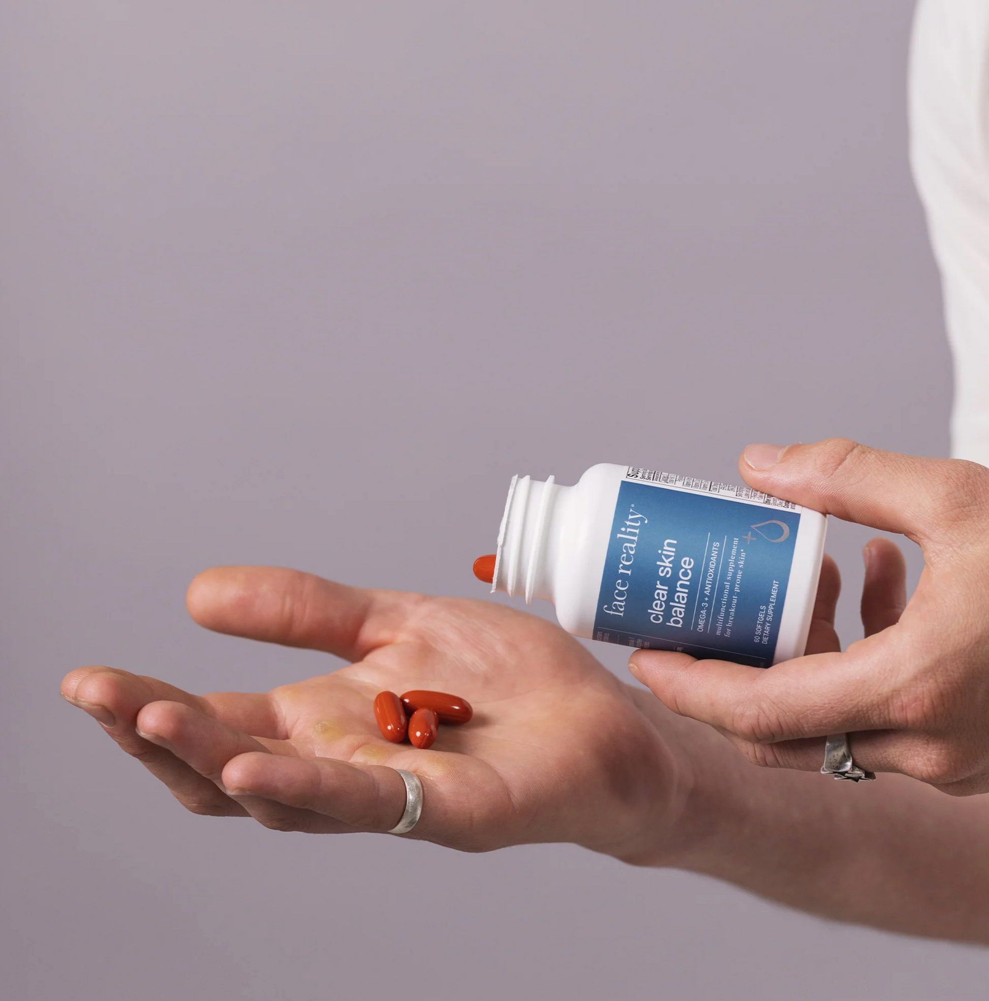 El Clear Skin Balance de Face Reality es un suplemento avanzado formulado con ácidos grasos Omega-3 y una mezcla patentada de antioxidantes diseñada para abordar la inflamación y el estrés oxidativo que afectan la salud de la piel. Este complemento nutricional ofrece: